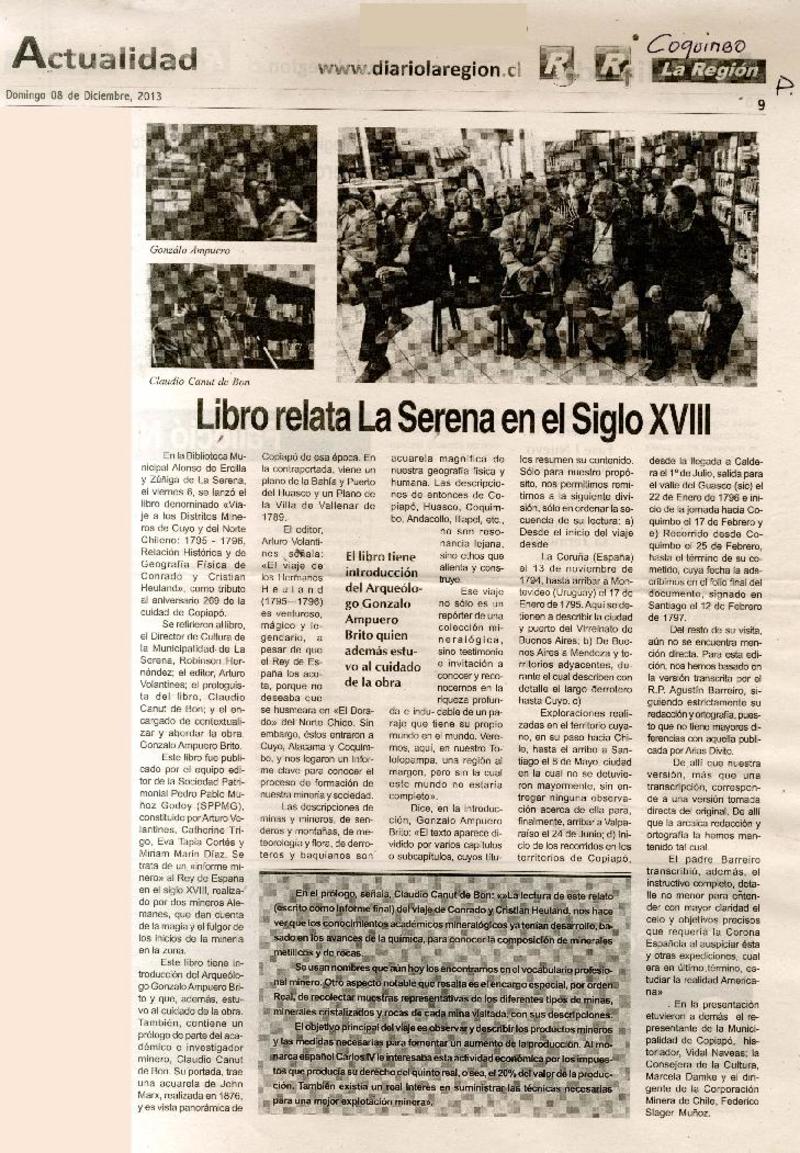 Libro relata La Serena en el siglo XVIII. [artículo]