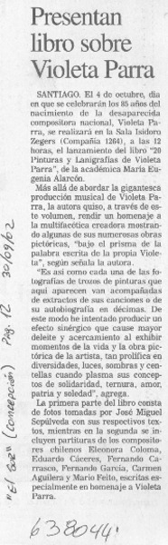 Libraco sobre Violeta Parra será presentado el día de su aniversario [artículo].