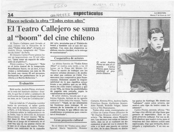 El Teatro callejero se suma al "boom" del cine chileno [artículo].