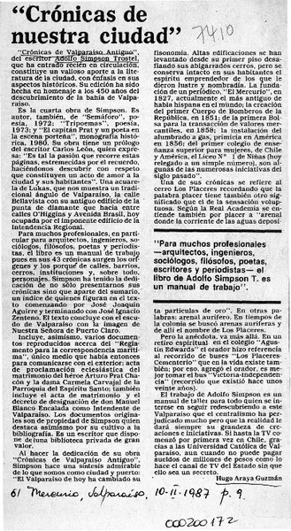 Libro, "Crónicas de Valparaíso antiguo" [artículo] Efraín Szmulewicz.