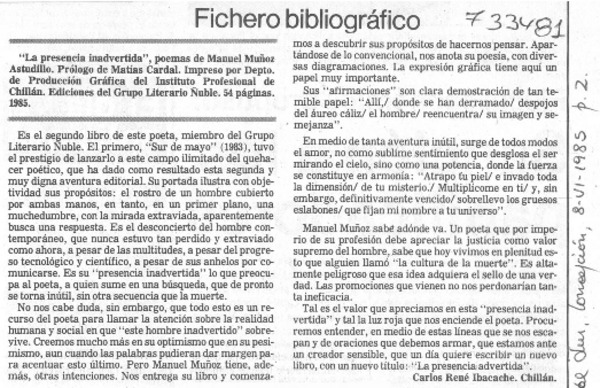 Autores chilenos - Muñoz A., Manuel - Presencia inadvertida