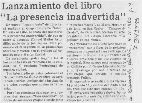Lanzamiento del libro "La presencia inadvertida". [artículo]