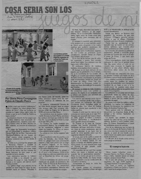 Cosa seria son los juegos de niños [artículo] Gloria Pérez Compagnon.