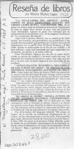 Reseña de libros [artículo] Marino Muñoz Lagos.