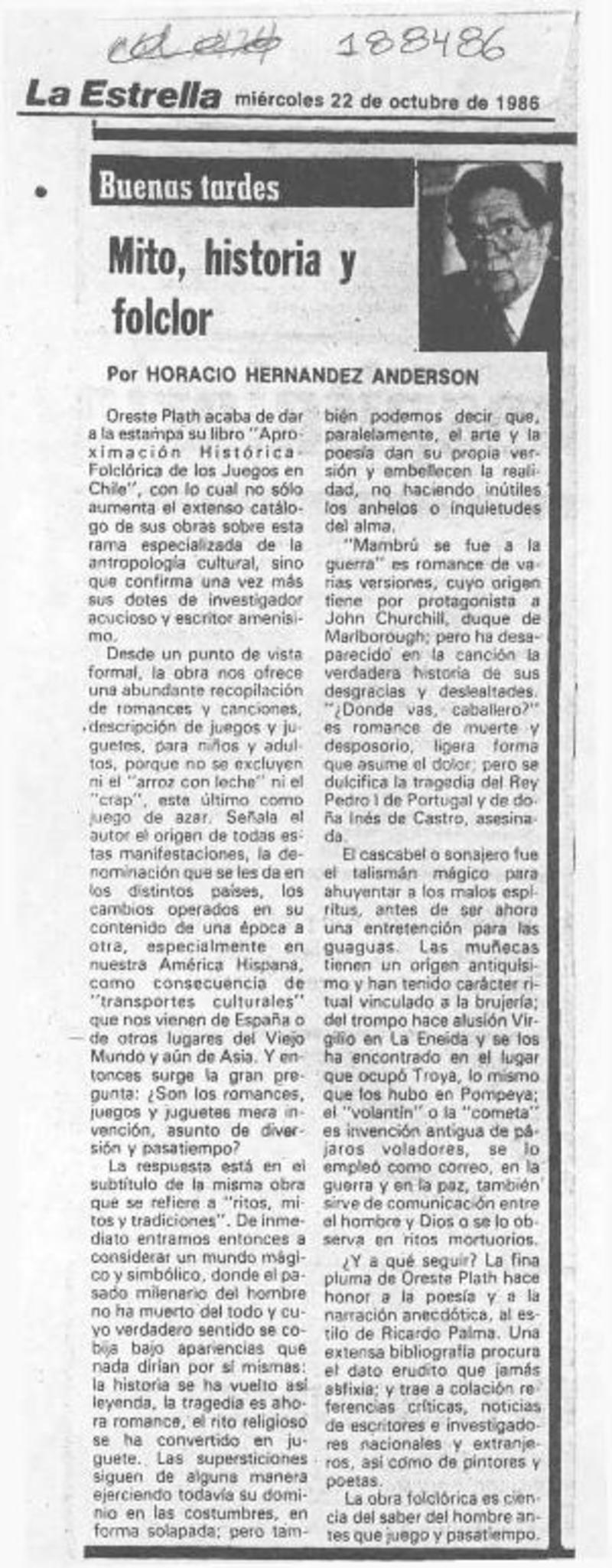 Mito, historia y folclor [artículo] Horacio Hernández Anderson.