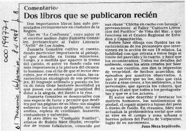 Dos libros que se publicaron recién [artículo] Juan Meza Sepúlveda.