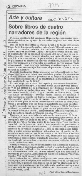 Sobre libros de cuatro narradores de la región [artículo] Pedro Mardones Barrientos.