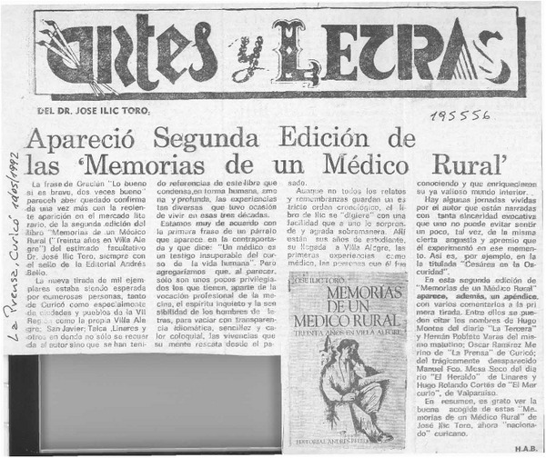 ![Apareció segunda edición de las "Memorias de un médico rural" [artículo] H. A. B. Apareció segunda edición de las "Memorias de un médico rural" [artículo] H. A. B.](channels-528_mime_jpg.gif)