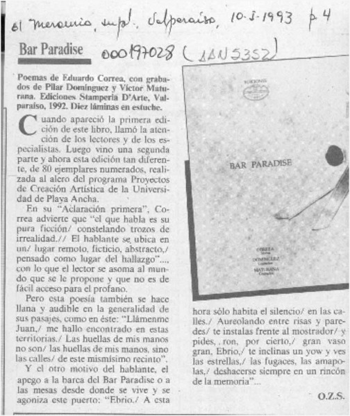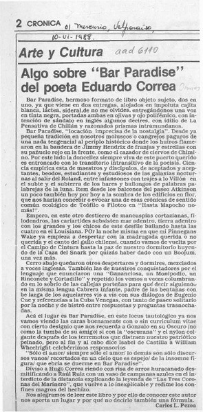 Algo sobre "Bar Paradise" del poeta Eduardo Correa [artículo] Carlos L. Pezoa.