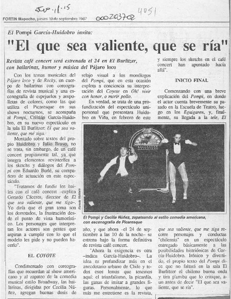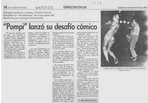 "Pompi" lanzó su desafío cómico [artículo] Ana María Blanco.