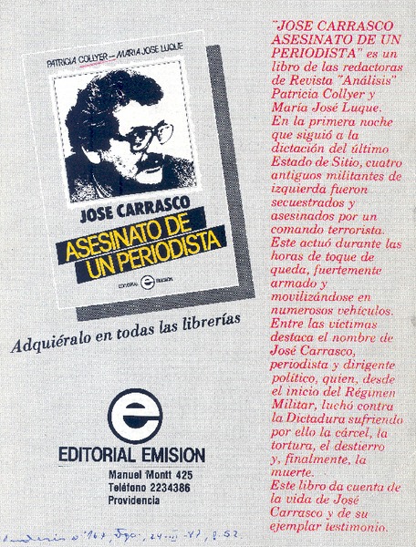LUQUE, MARIA JOSE - COLLYER, PATRICIA - JOSE CARRASCO, ASESINATO DE UN PERIODISTA