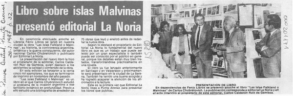 Libro sobre islas Malvinas presentó editorial La Noria [artículo].