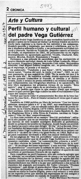 Perfil humano y cultural del padre Vega Gutiérrez [artículo] Pedro Mardones Barrientos.