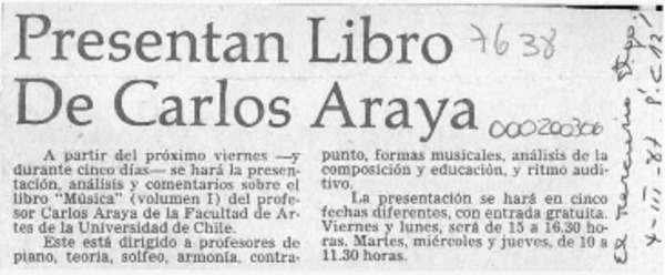 Carlos Araya Araya, "Música" [artículo] Inés Grandela.