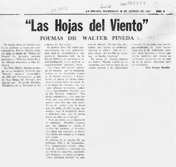 "Las hojas del viento" [artículo] José Vargas Badilla.