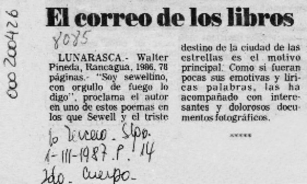Entre "Lunarasca" y "La palabra perdida" [artículo] Jaime Salgado Albornoz.