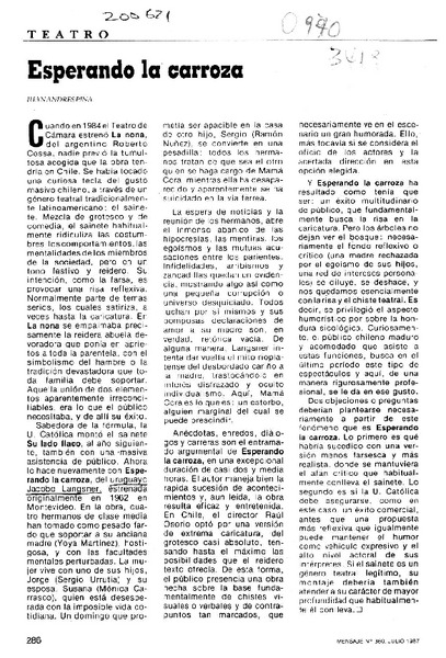 Esperando la carroza [artículo] Juan Andrés Piña.