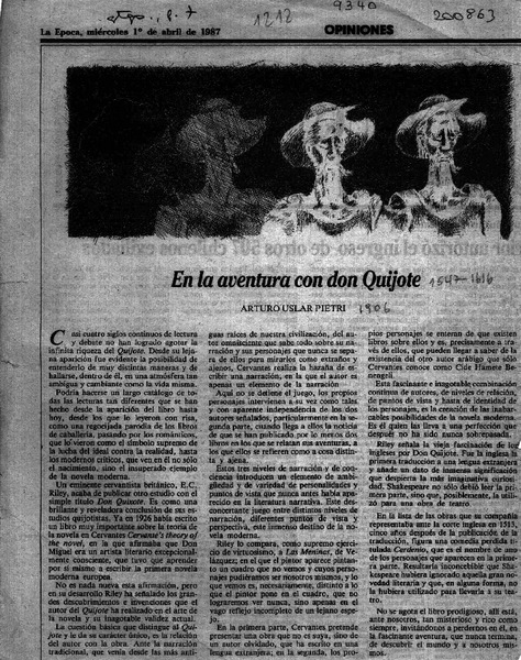 En la aventura con don Quijote [artículo] Arturo Uslar Pietri.