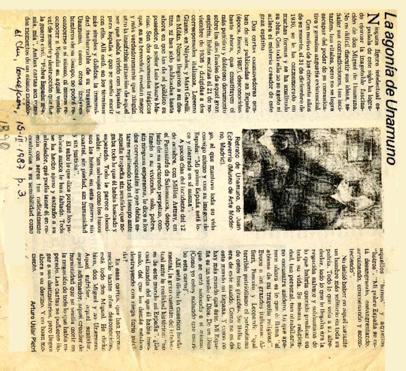 La agonía de Unamuno [artículo] Arturo Uslar Pietri.