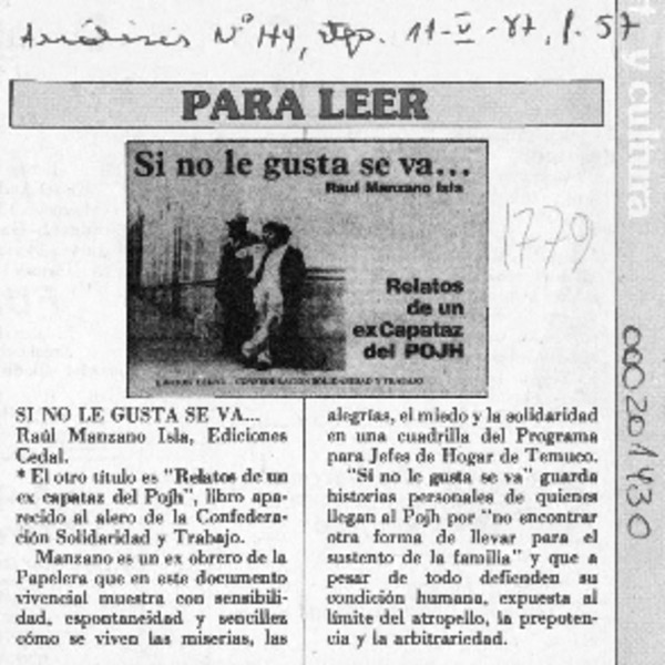 ARAUCARIO, PEDRO - ANTOLOGIA DE POESIA POBLACIONAL - MORENO, DEMIAN - MANZANO ISLA, RAUL - SI NO LE GUSTA SE VA -- - GONZALEZ, TOMAS - PASTOR PARA LOS HOMBRES DE HOY, UN