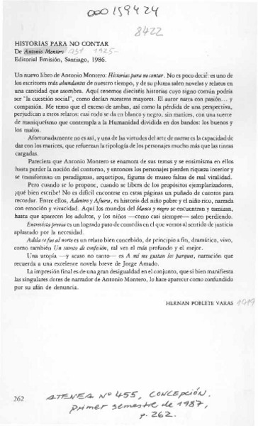 Historias para no contar [artículo] Hernán Poblete Varas.