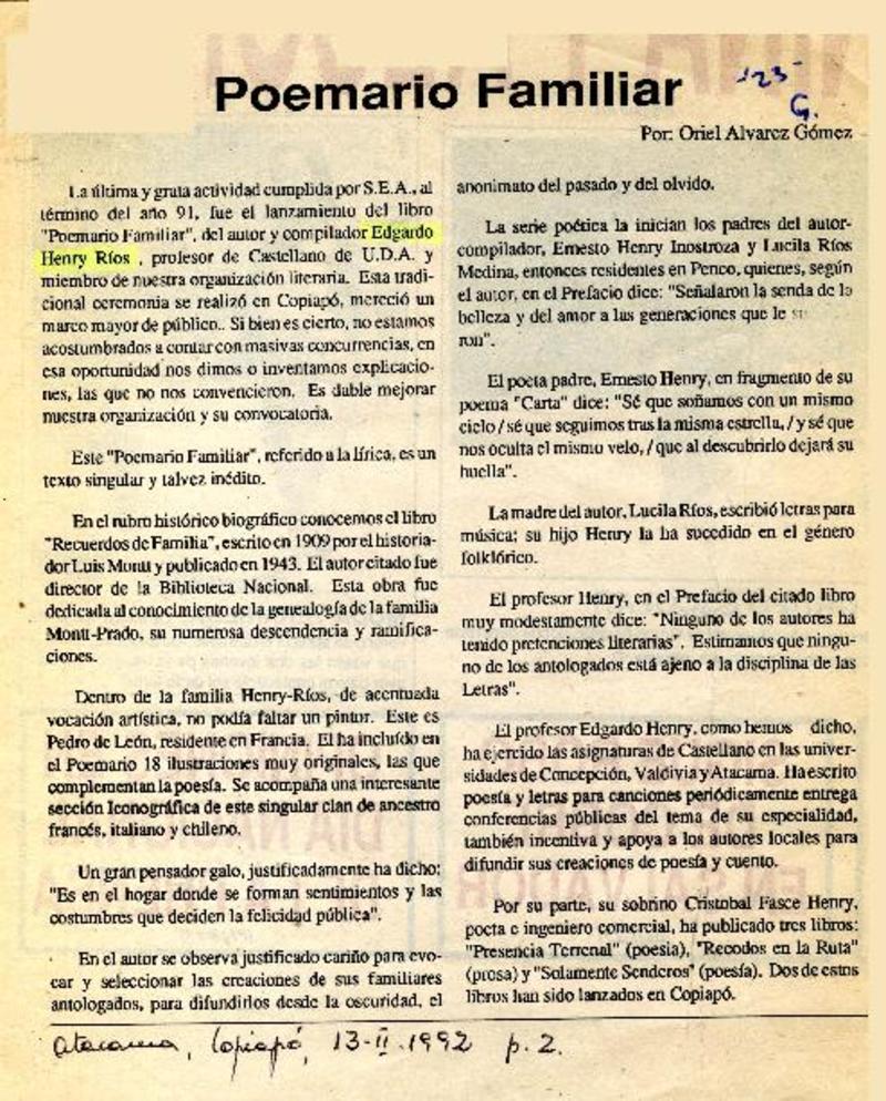 Gestación del poemario familiar [artículo] Edgardo Henry.