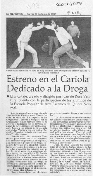 "La tragedia de los drogadictos" debuta hoy en el Teatro Cariola [artículo].