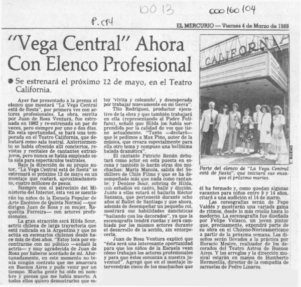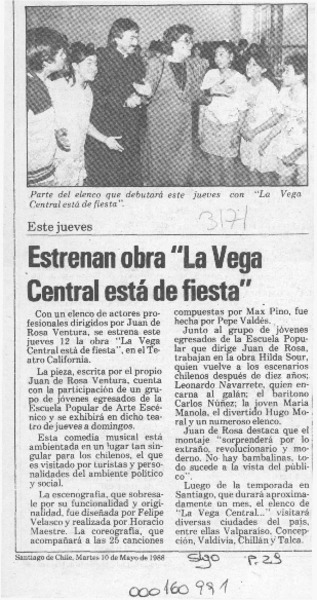Esta tarde será el estreno de "La Vega Central está de fiesta" [artículo].