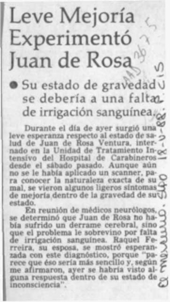 Leve mejoría experimentó Juan de Rosa [artículo].