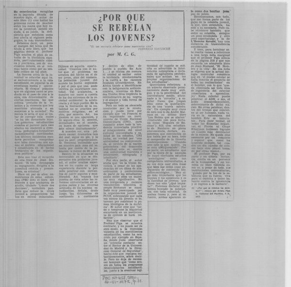 "Por qué se rebelan los jóvenes" [artículo] M. C. G.