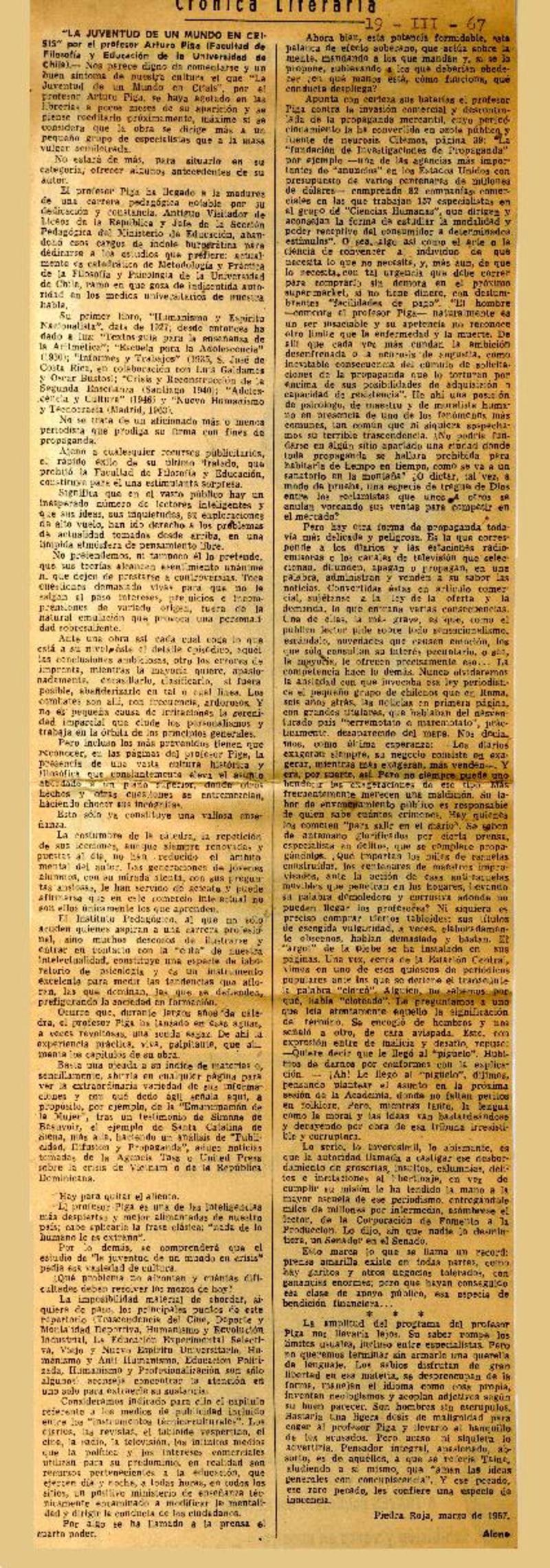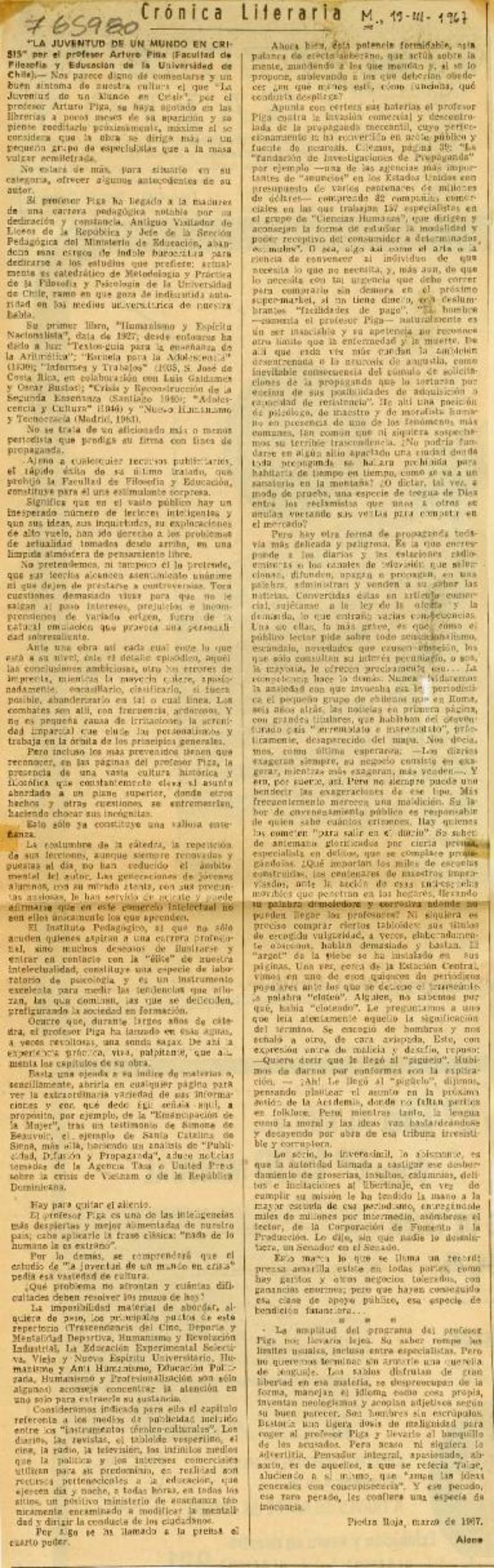 Autores chilenos - Piga Dacchena, Arturo - La juventud de un mundo en crisis