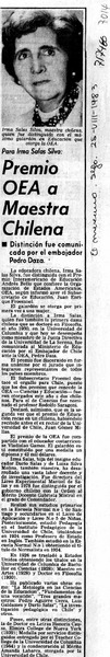 Profesora Irma Salas premiada por la OEA. [artículo]