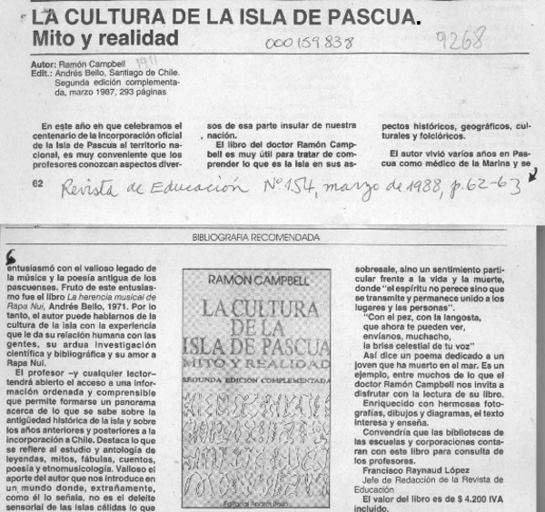 La cultura de la Isla de Pascua [artículo] Francisco Raynaud López.