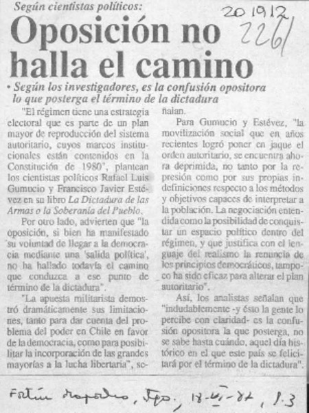 Oposición no halla el camino [artículo].