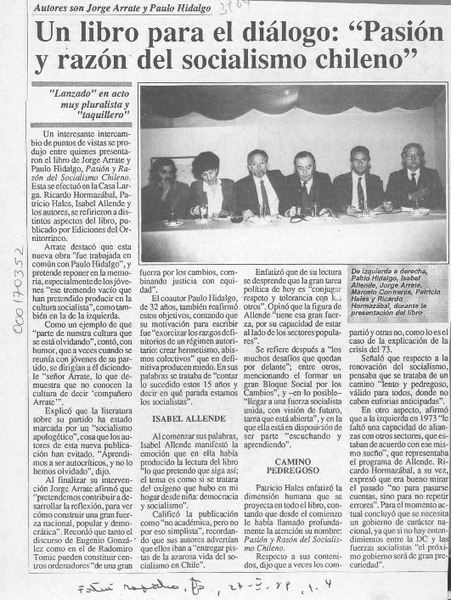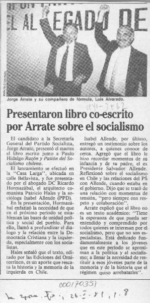 Presentaron libro co-escrito por Arrate sobre el socialismo [artículo].