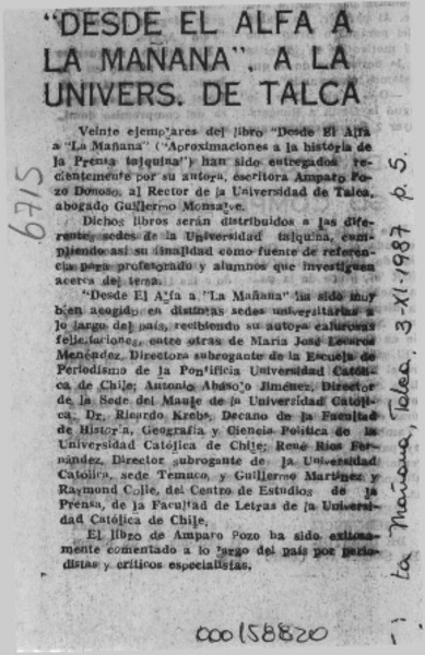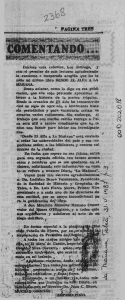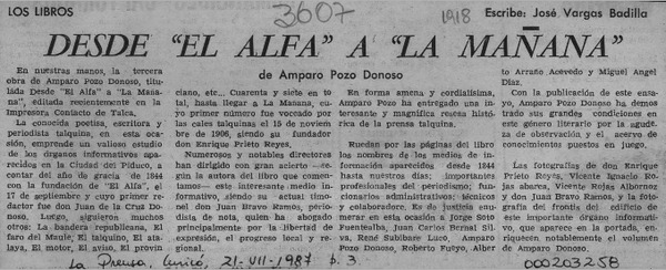 Amparo Pozo Donoso, "Desde "El Alfa" a "La Mañana" [artículo] José Arraño Acevedo.