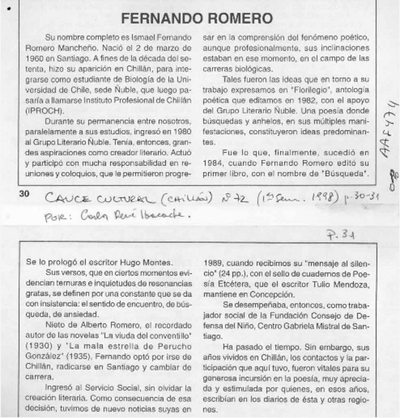 Autores chilenos - Romero Mancheño, Fernando - Elegida