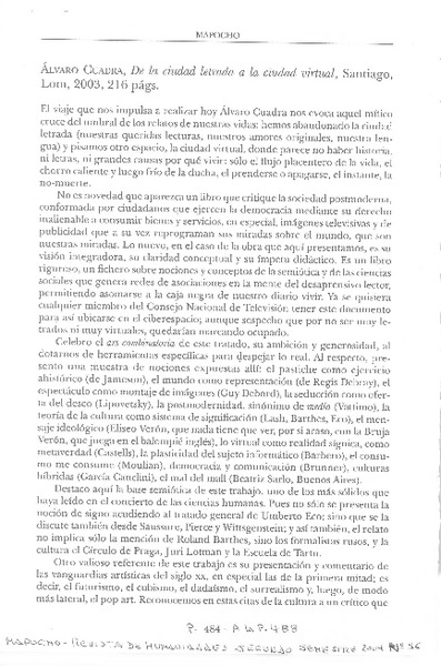 Autores chilenos - De la ciudad letrada a la ciudad virtual - Cuadra, Alvaro