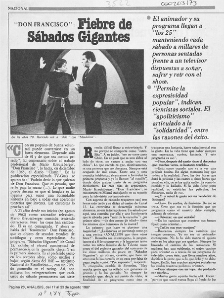 "Don Francisco", fiebre de Sábados Gigantes [artículo] Alicia Oliva.
