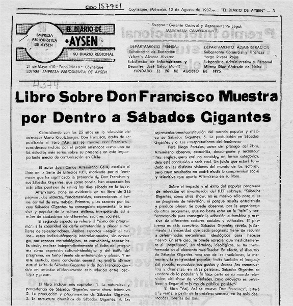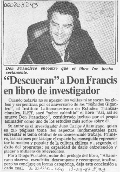Partes de nueva publicación no dejan bien parado a Don Francisco [artículo].