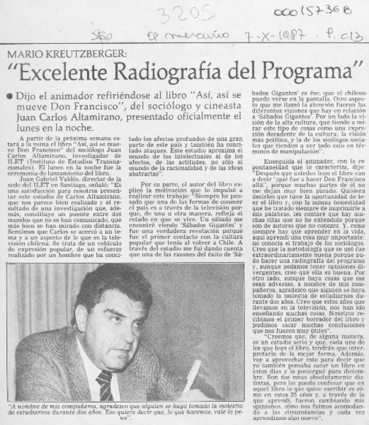 Mario Kreutzberger, "Excelente radiografía del programa" [artículo].
