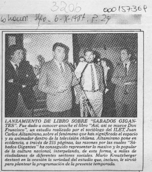 Lanzamiento de libro sobre "Sábados Gigantes" [artículo].