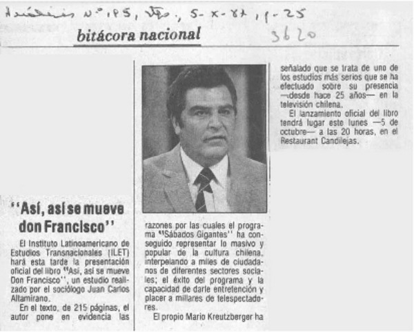 "Así, así se mueve don Francisco" [artículo].