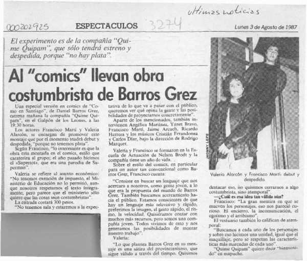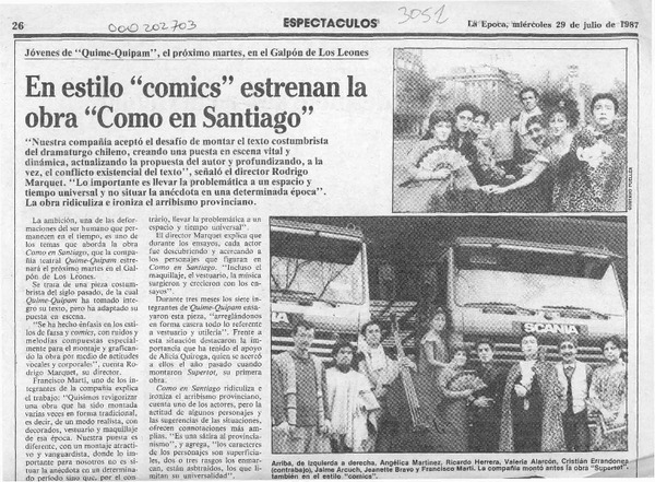 En estilo "comics" estrenan la obra "Como en Santiago" [artículo].