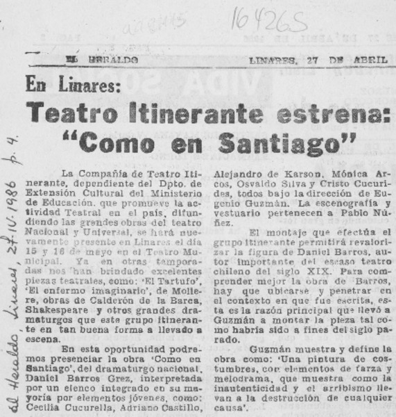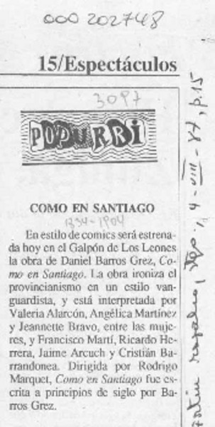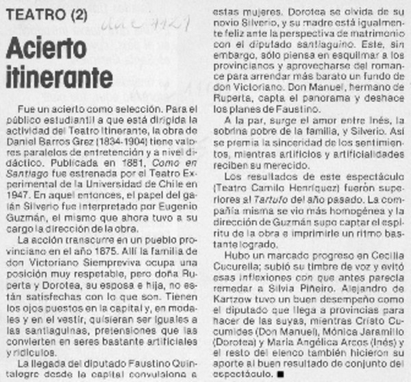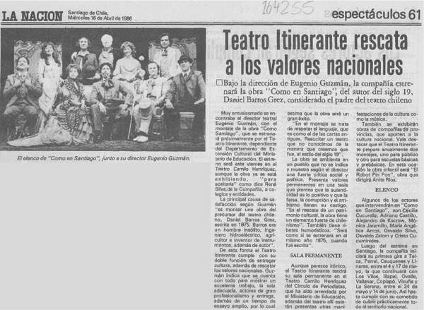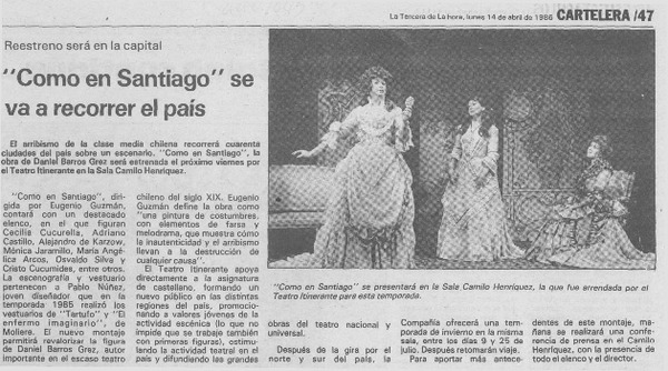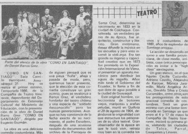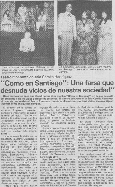 Teatro Itinerante estrena "Como en Santiago" [artículo].