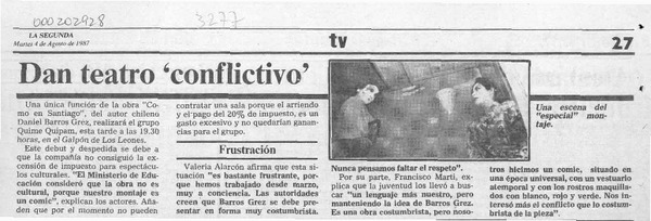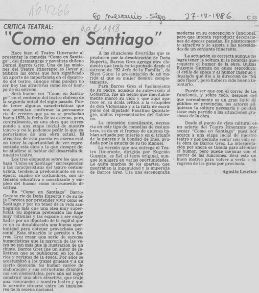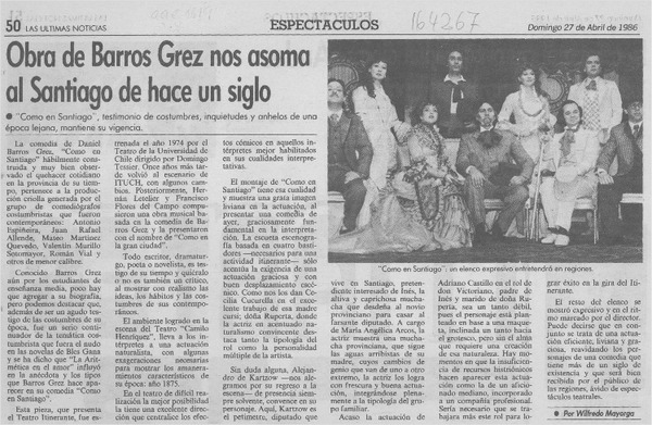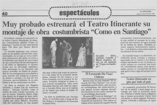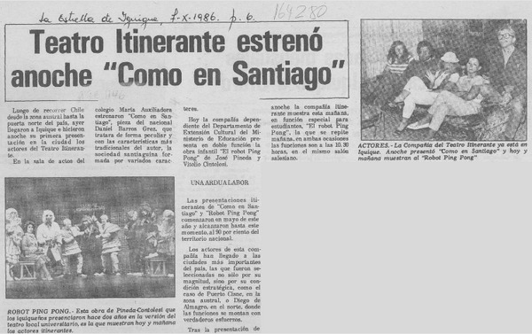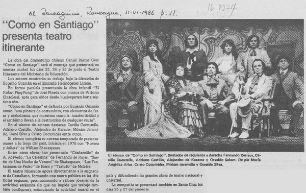 Teatro Itinerante estrenó anoche "Como en Santiago" [artículo].