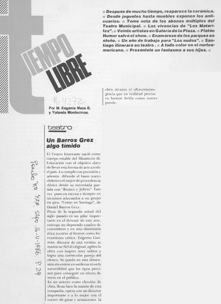 Un Barros Grez algo tímido [artículo] M. Eugenia Meza B. [y] Yolanda Montecinos.