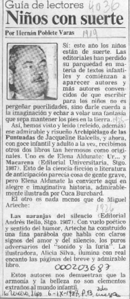 Niños con suerte [artículo] Hernán Poblete Varas.