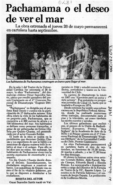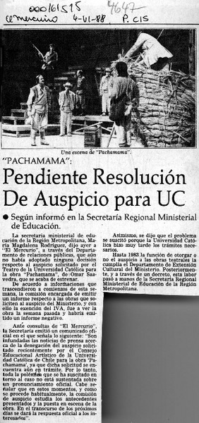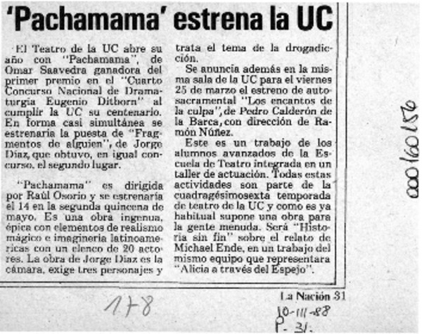 Con obra "Pachamama" inicia temporada 88 [artículo].