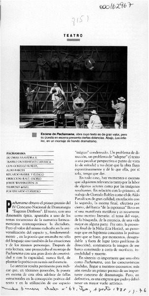 Estrenan en Santiago la obra "Pachamama" [artículo].